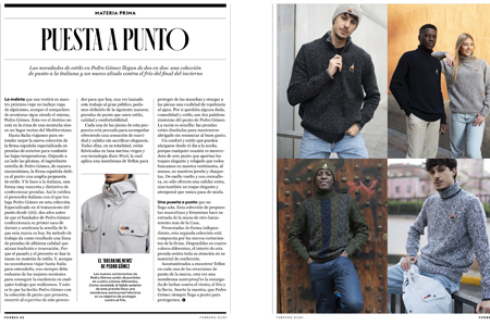 Página en la edición impresa en Forbes sobre la aspiración street-style de Pedro Gómez con la nueva colección de cortavientos, chalecos y punto publicado en abril de 2025.