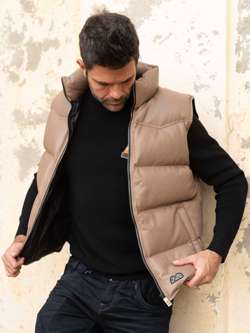 Sofisticación y elegancia se unen en el chaleco Piel Negra, contrastando además con un forro azul celeste. Si quieres un básico perfecto para tus looks diarios, el chaleco Piel Marrón es la opción ideal. Y para los que quieran añadir un toque de exclusividad, recomendamos el chaleco Ante Marrón con forro beige Isabelle.