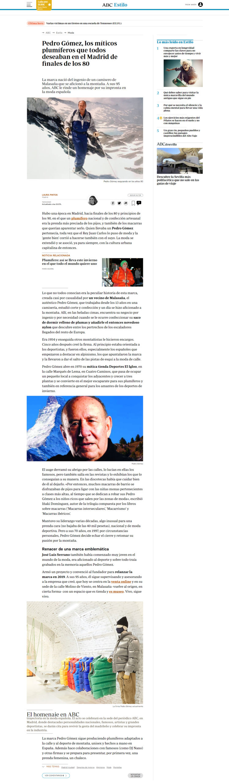 Noticia sobre Pedro Gómez y la marca publicada en ABC el 15 de marzo de 2023