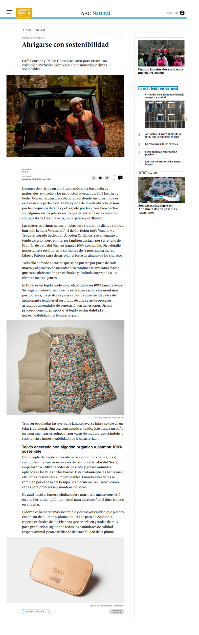 Artículo sobre nuestra colaboración con Café Leather publicado en ABC el 19 de diciembre de 2022.