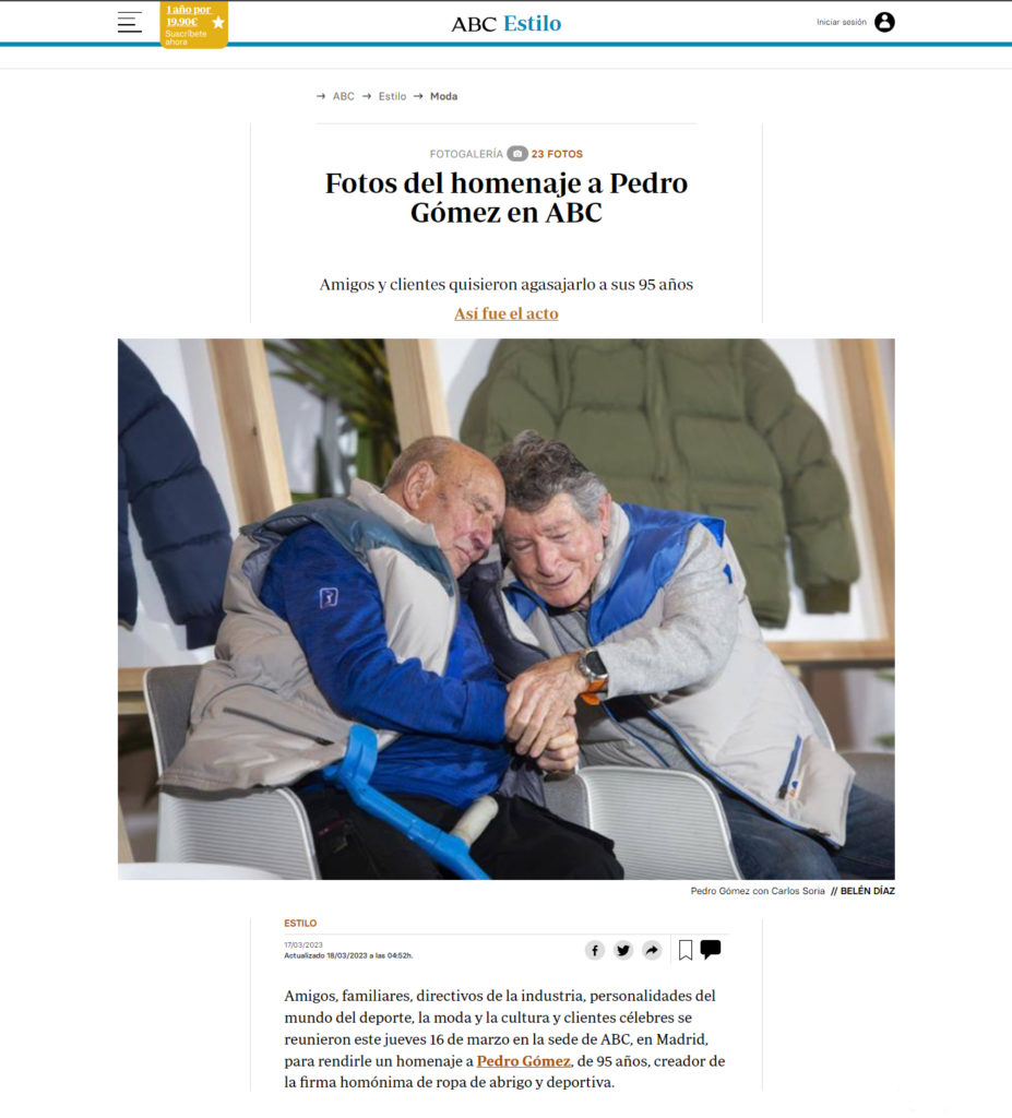 Reportaje gráfico sobre el Homenaje a Pedro Gómez publicado en ABC el 17 de marzo de 2023.