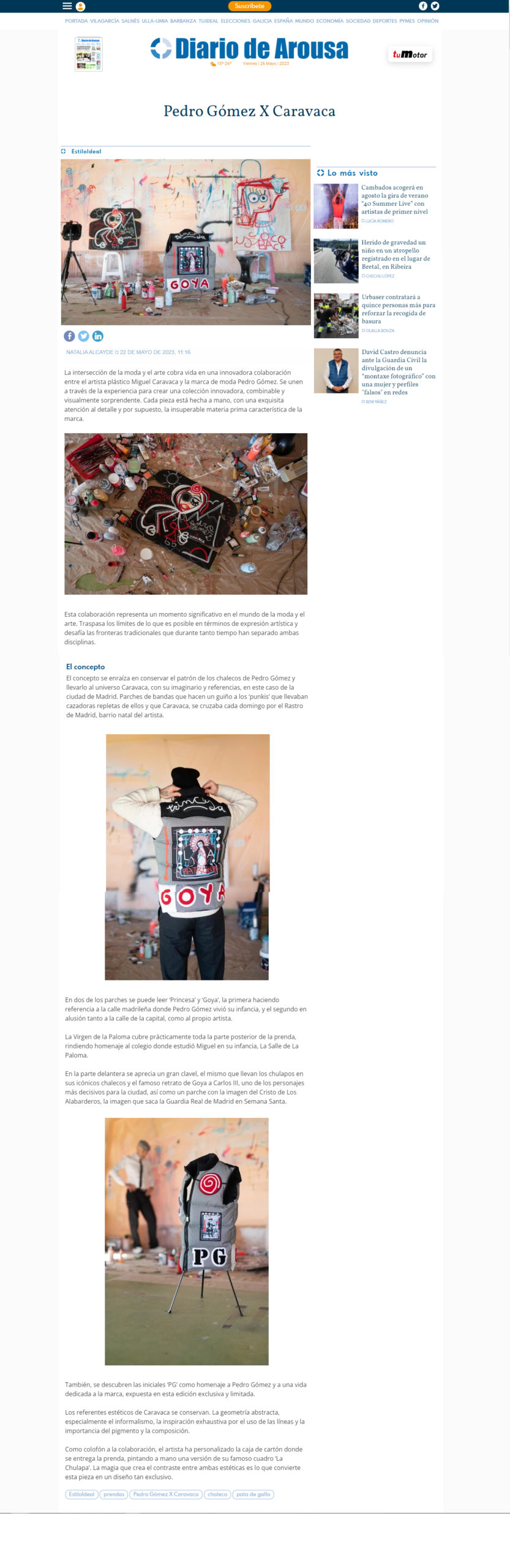 Post en Diario de Arousa sobre la colaboración Pedro Gómez x Caravaca publicada el 22 de mayo de 2023.