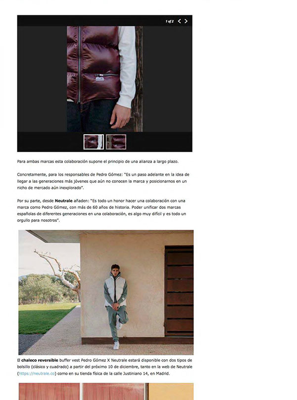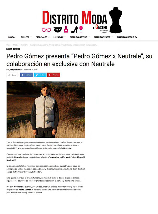 Nuevo reportaje sobre la colaboración realizada entre Pedro Gómez y nuestros amigos de Neutrale, esta vez realizada por Distrito Moda.