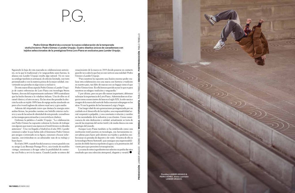 Reportaje sobre la colaboración de Pedro Gómez Madrid con Lander Urquijo publicado en Forbes en enero de 2022.
