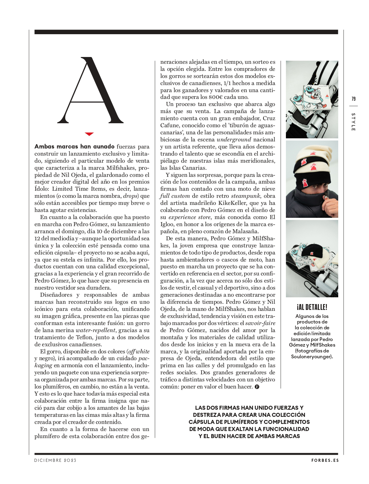 Doble página en la edición impresa en Forbes publicado en diciembre de 2023.