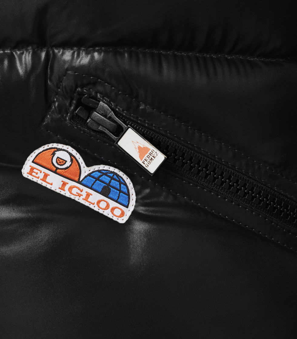 Cuerpo y canesú con el tejido Kiss en color negro y forro interior con el tejido Kiss en color negro.
