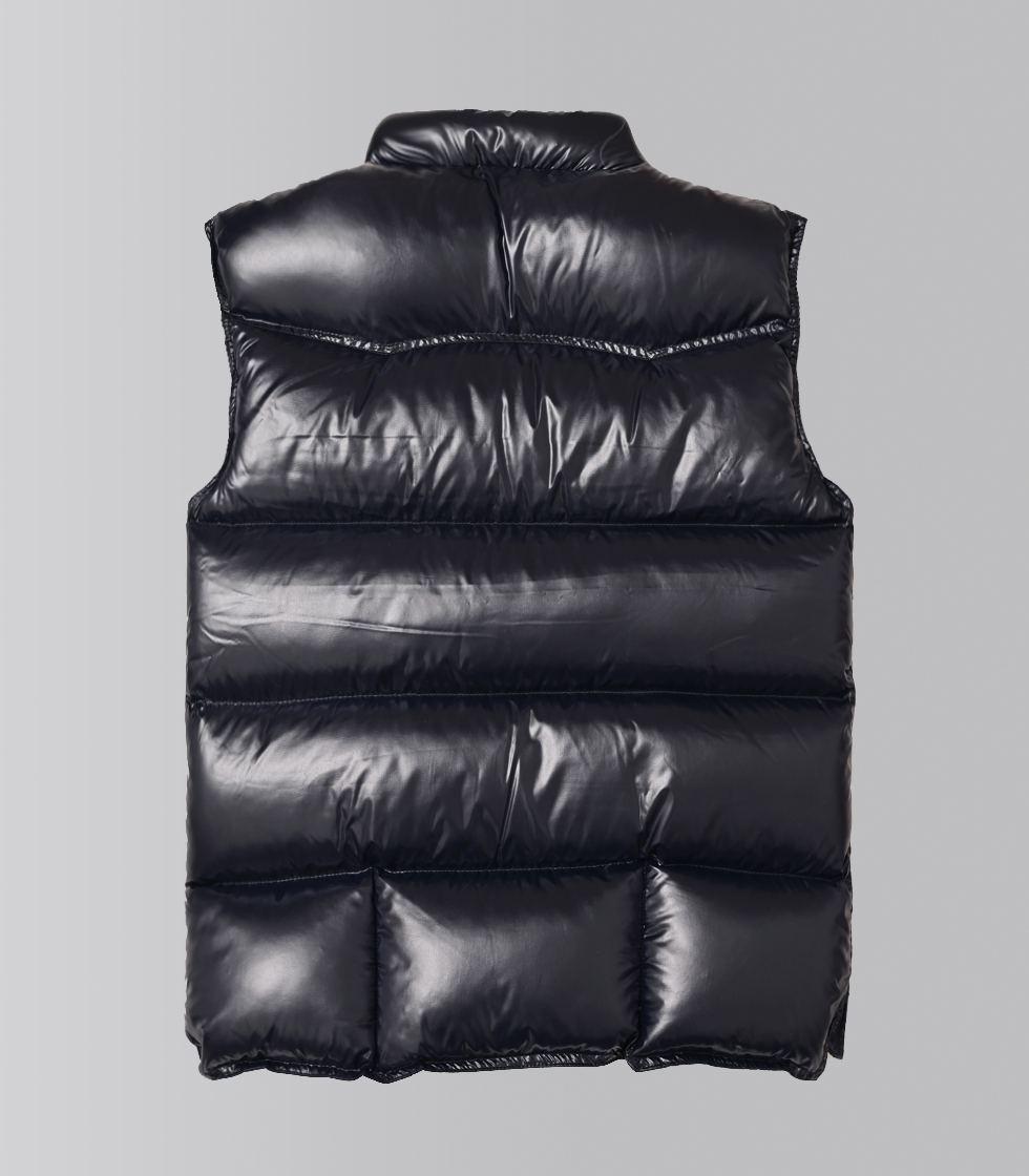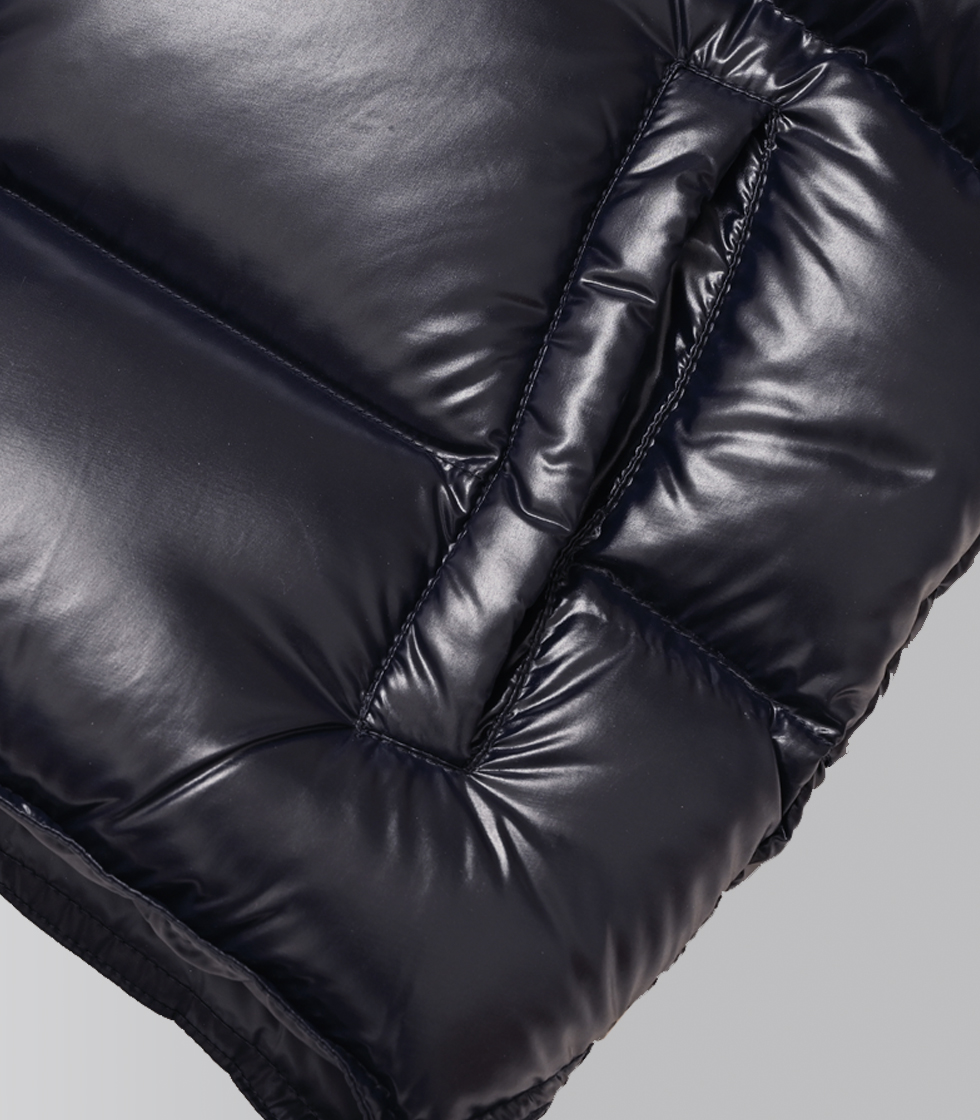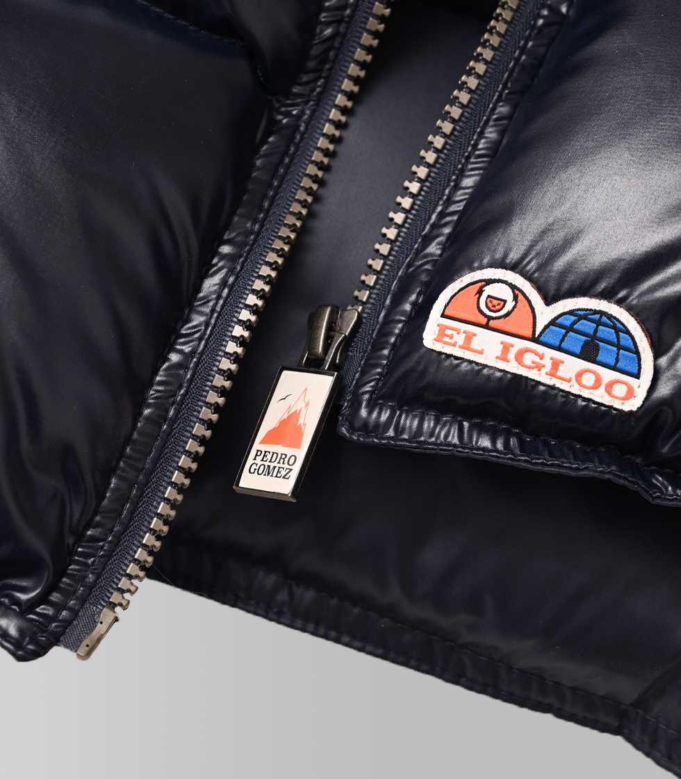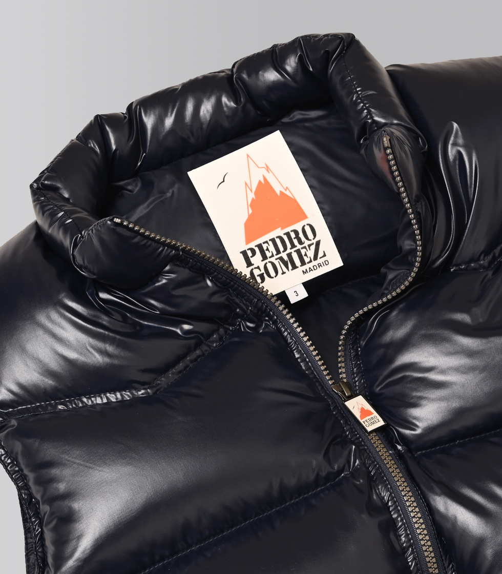Cuerpo y canesú en tejido Kiss con el color azul oscuro Dark Night en su lado brillo y forro interior en tejido Kiss en el color azul oscuro Dark Night en su lado mate.