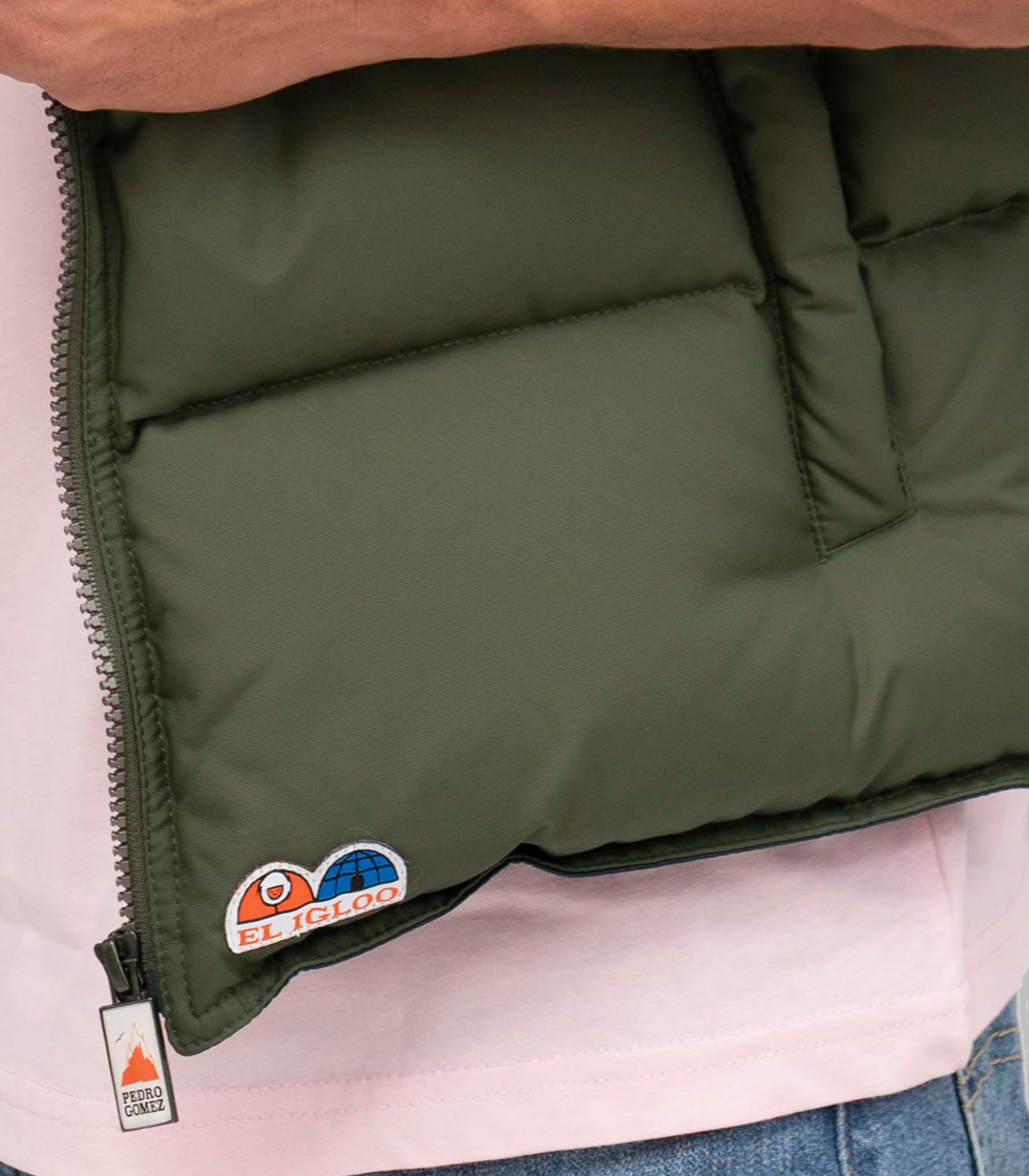 Cuerpo y canesú en tejido Lodge con el color verde army y forro interior en tejido Kiss en el color negro Noir.