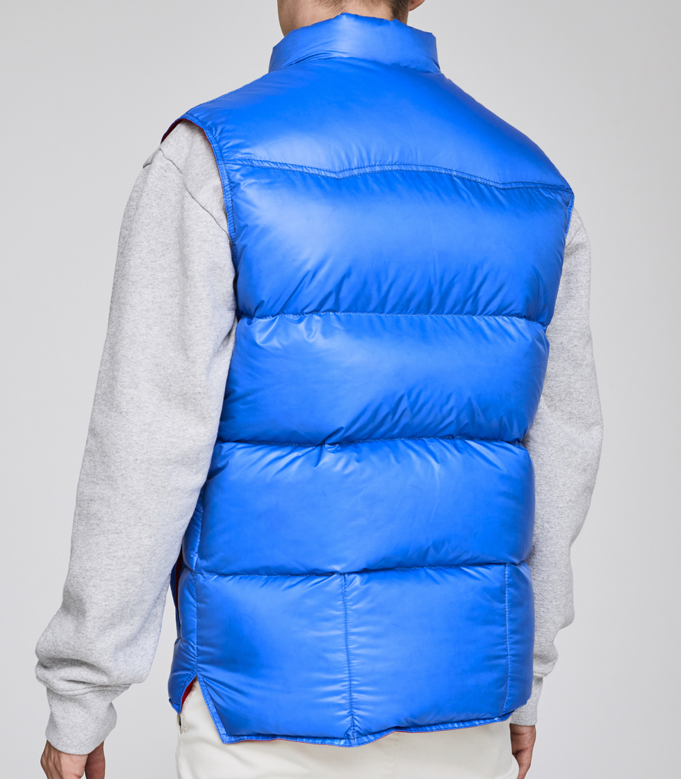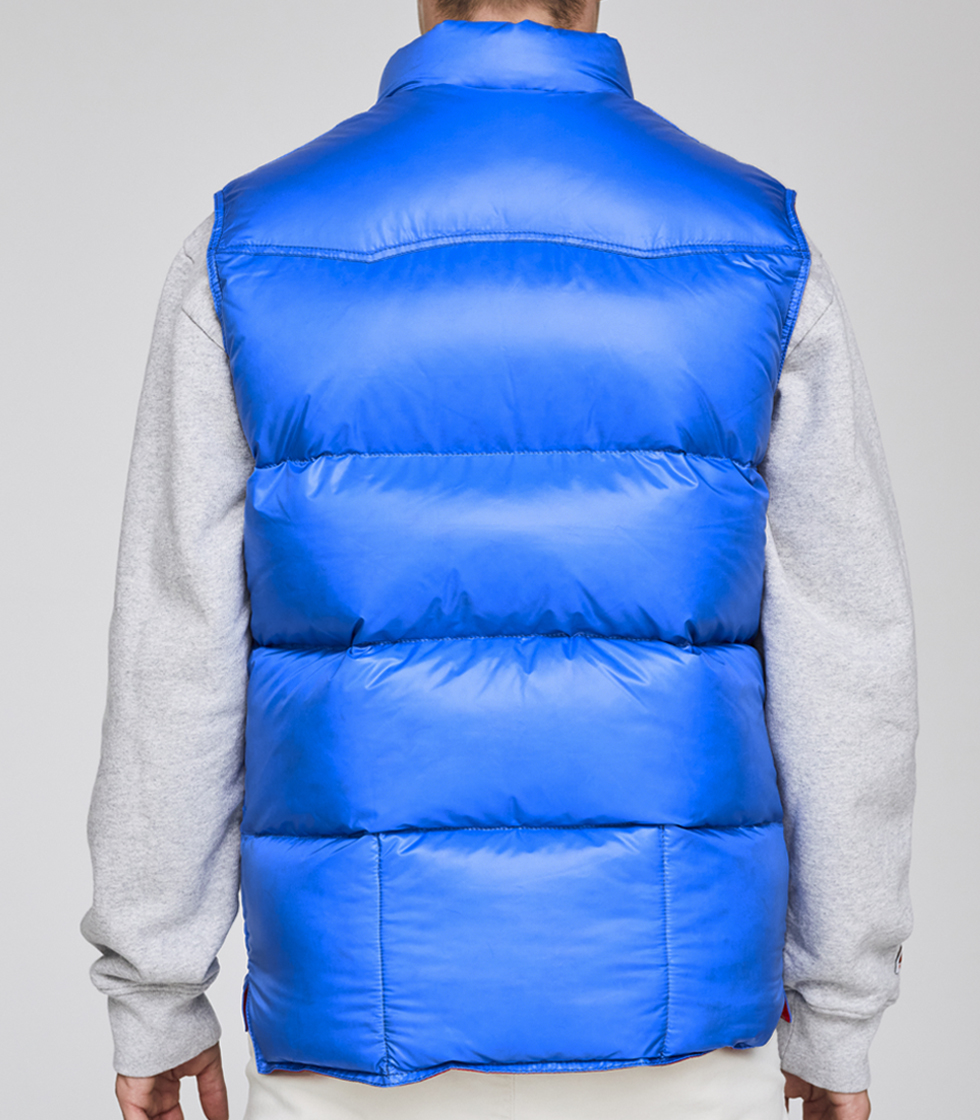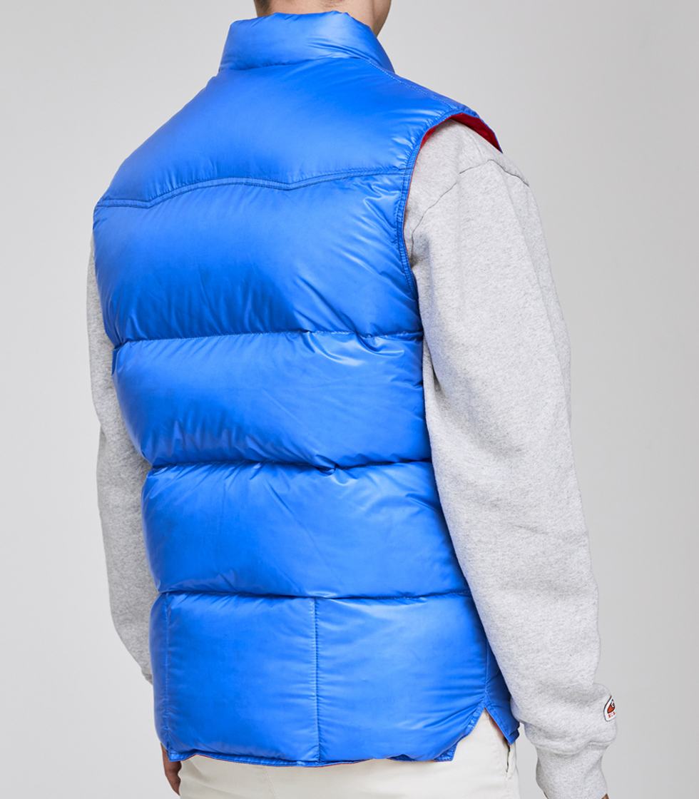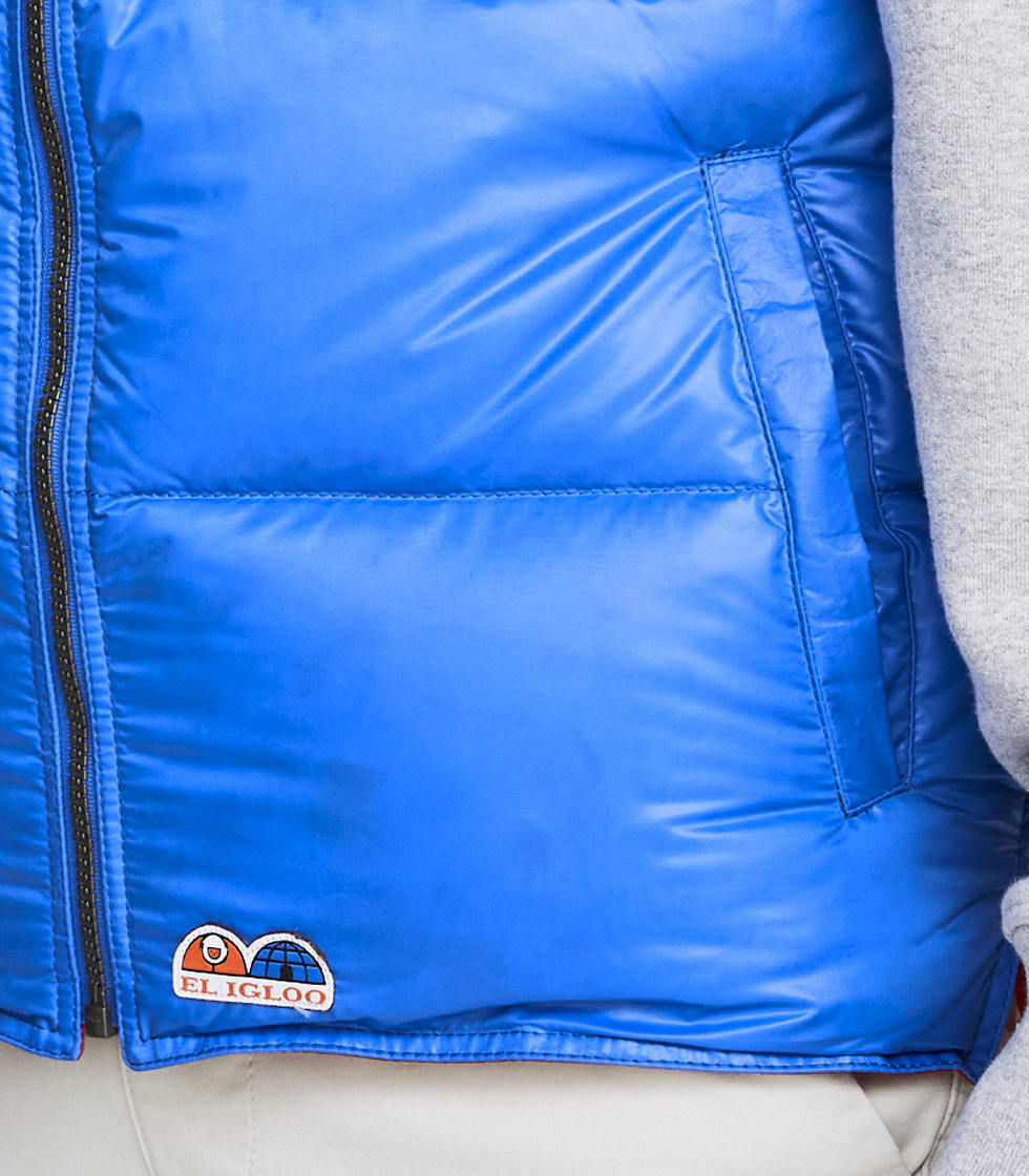 Cuerpo y canesú en tejido retro Pedro con el color azul Francia y forro interior en tejido retro Pedro en el color rojo.