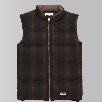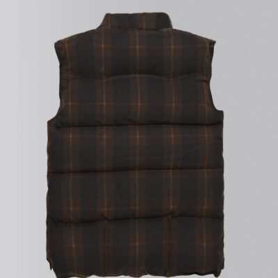 Cuerpo y canesú en tejido encerado con color verde oscuro y forro interior en tejido de algodón con el tartán en tonos azulados y verdes.