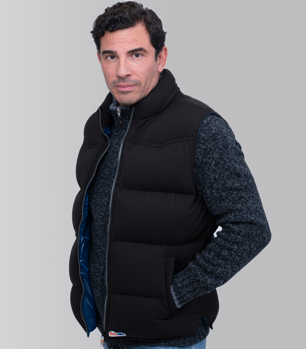 Cuerpo y canesú en tejido Tosca con el color negro y forro interior en tejido Carrara en el color azul Pedro Blue.