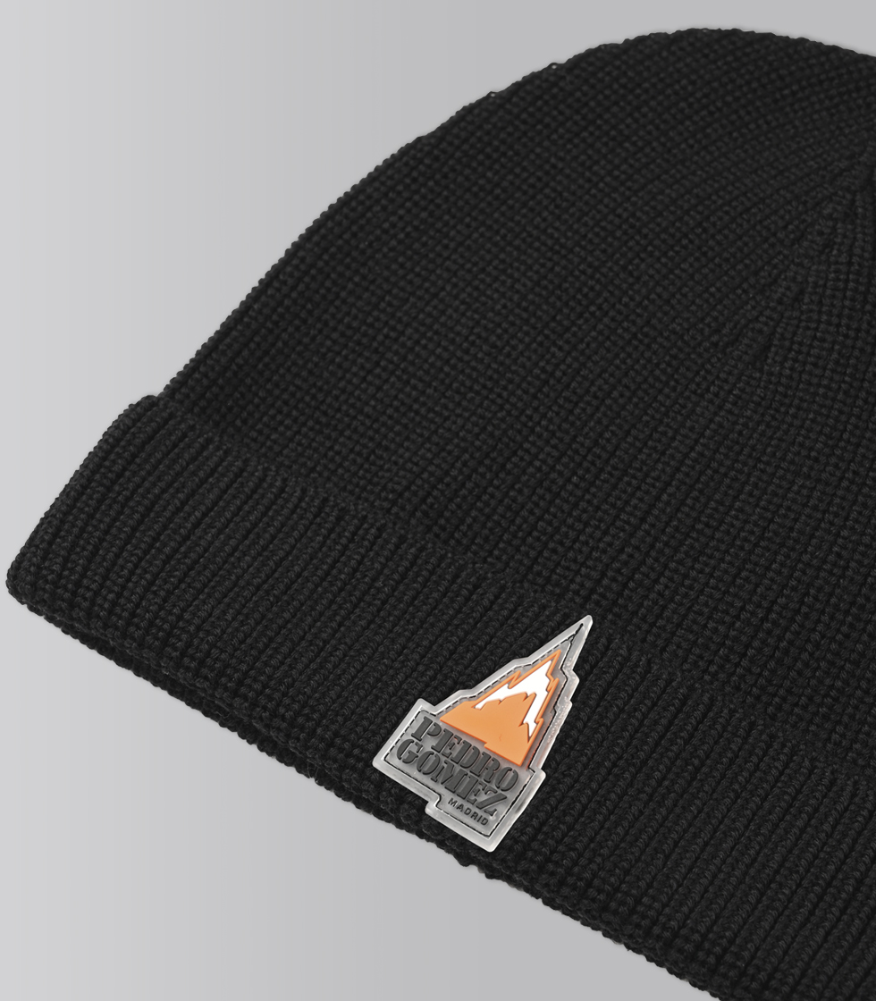 Fabricada 100% en lana virgen, cuenta con el logo vertical engomado Pedro Gómez Madrid cosido en la parte frontal.
